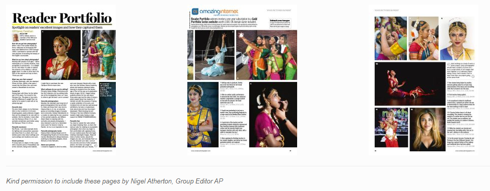 The magazine covers his long-term project to document the Nritham Dance Academy. He has also published a book of the project, Growing Up and Thriving in Two Very Different Cultures